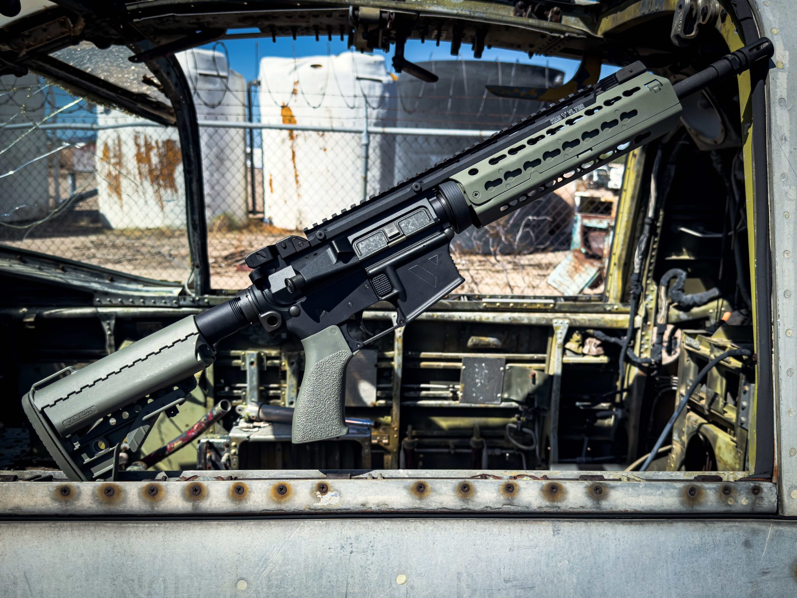 - VLTOR lower receiver with oversized mag release and side saddle sling plate