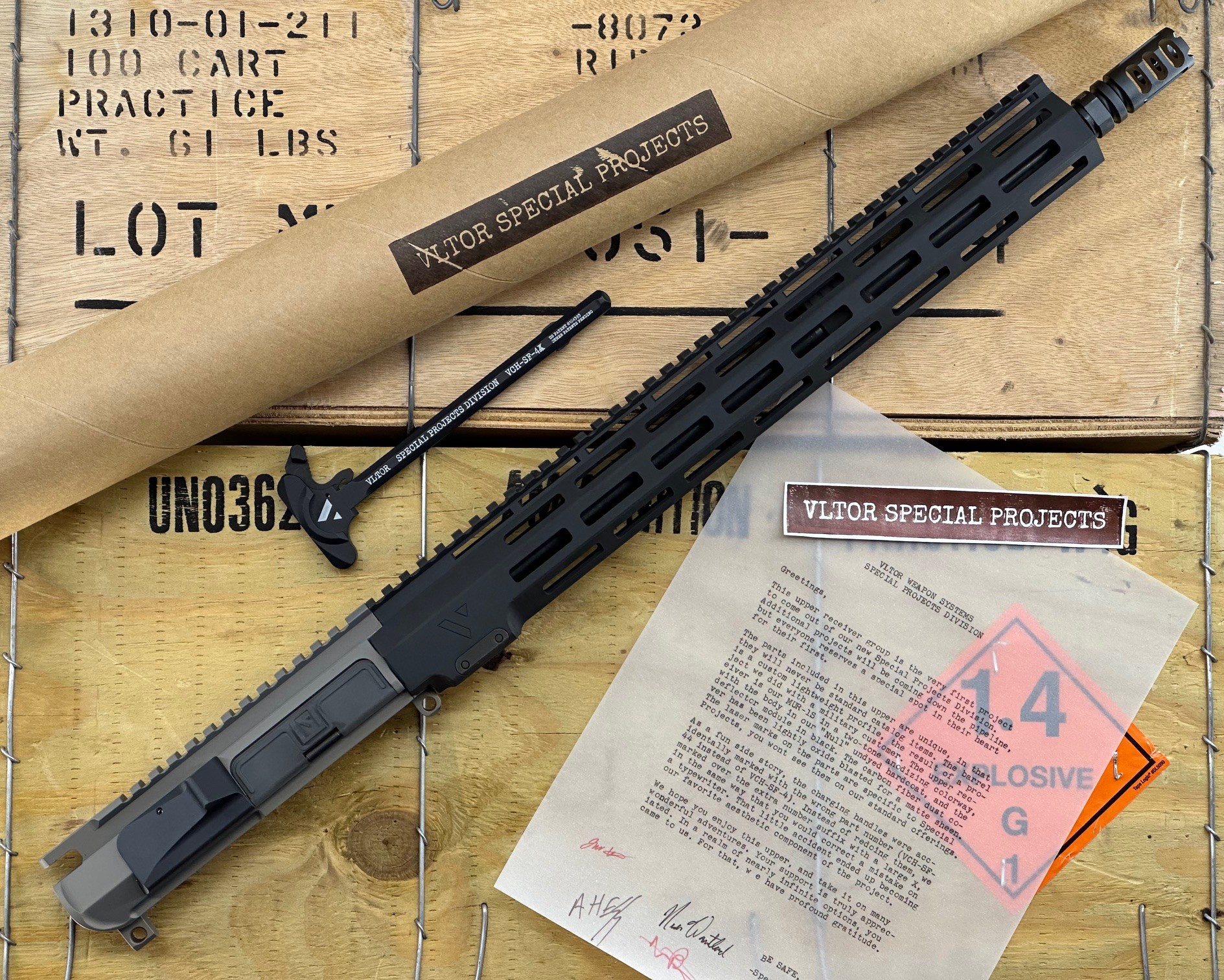 Prior to shipping, all VLTOR upper receiver groups are test fired for function. The URG will show handling marks or minor cosmetic blemishes consistent with these QC procedures.