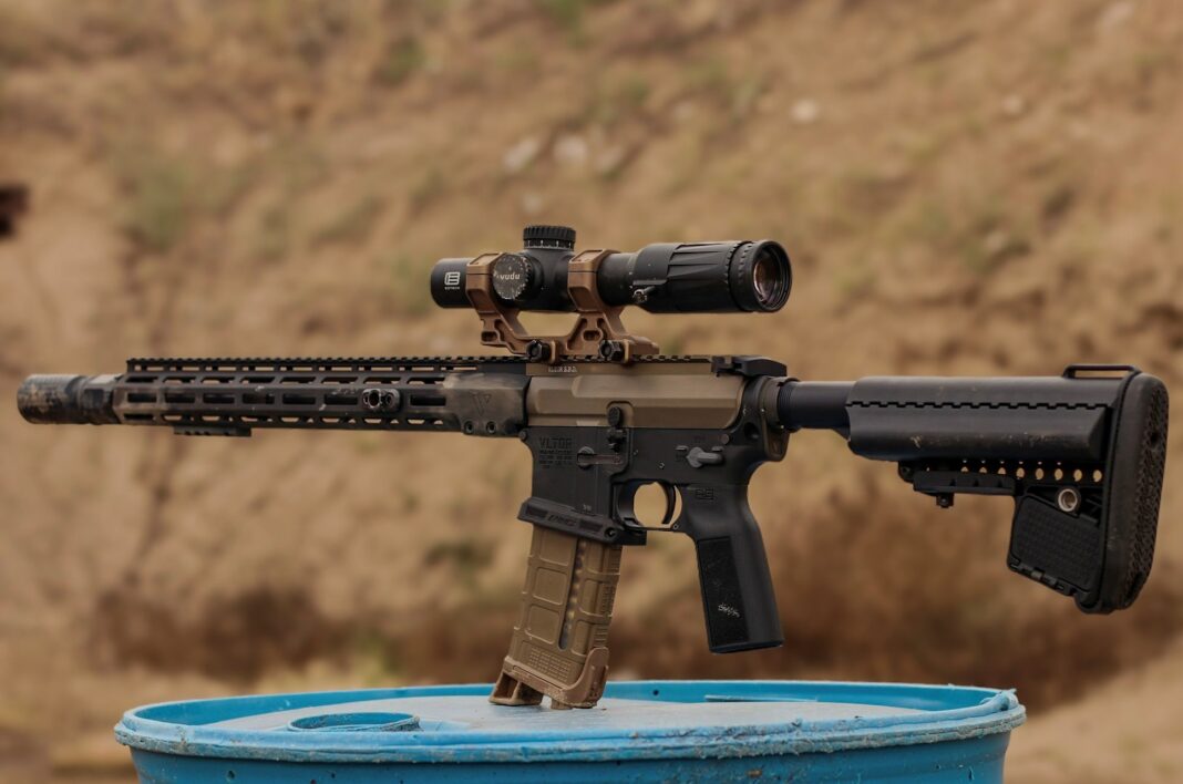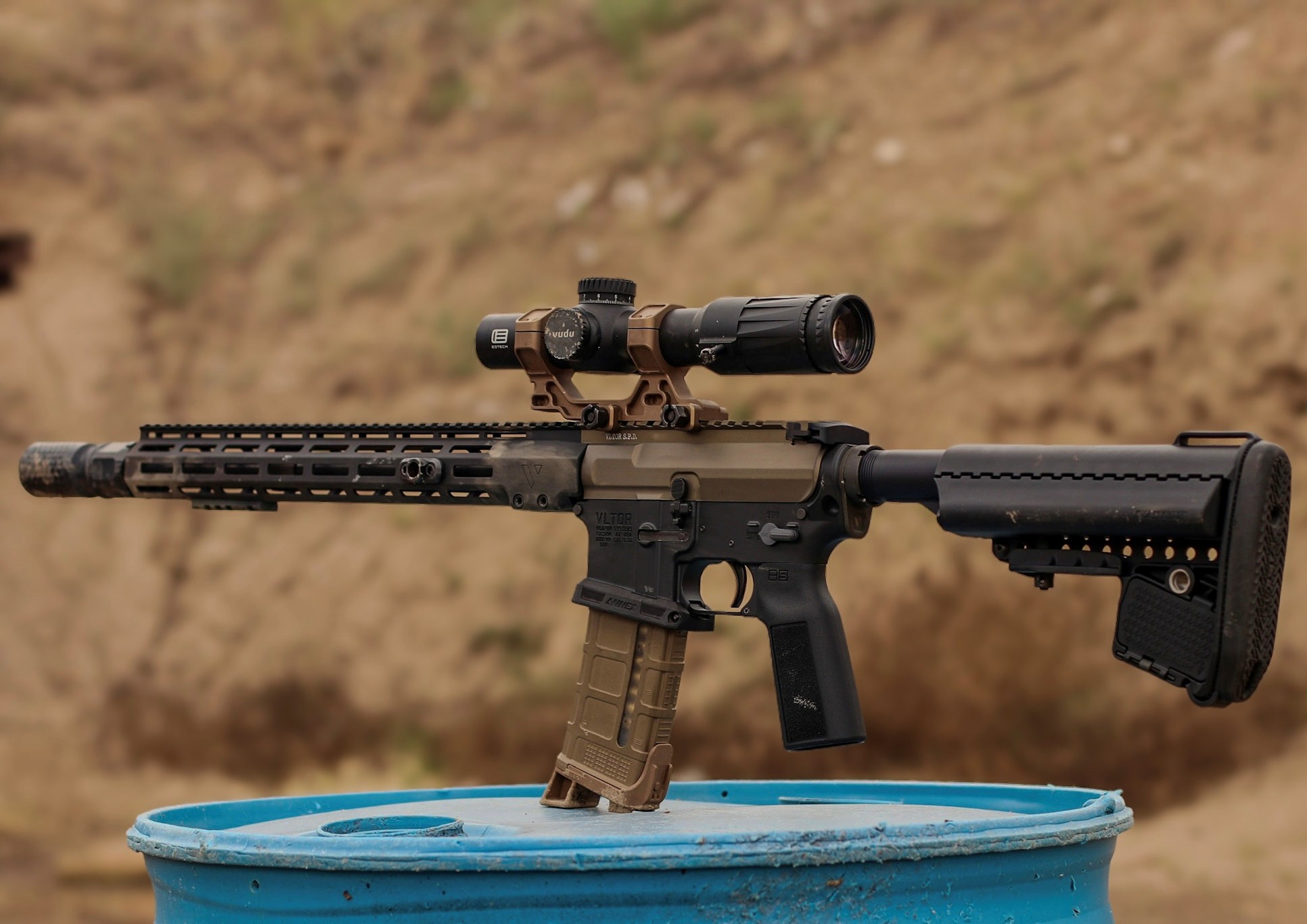 *VLTOR 16″ barrel with custom lightweight contour. 4150 CMV steel, 5.56mm chamber, 1-7 twist, nitride finish.